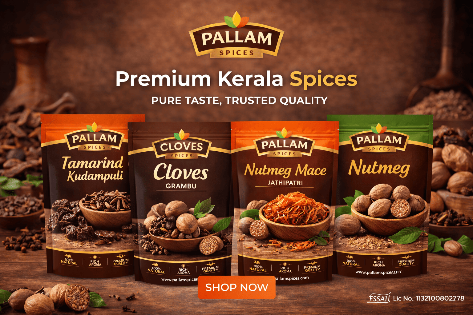 Our Farm Products Cloves Grambu ₹280.00 Coffee Powder ₹280.00 Highrange Black Pepper ₹280.00 Highrange Cardamom ₹380.00 Nutmeg / Jathikka ₹340.00 Nutmeg Mace / Jathipatri ₹180.00 Pragati Turmeric Powder ₹180.00 Tamarind Kudampuli ₹180.00 Pallam Spices delivers farm-fresh purity, authentic Kerala flavors, and trusted quality in every aromatic spice pack. ๐ฟ – Nanth Kishore, Andhra Pradesh.Pure from our farm to your kitchen โ Pallam Spices brings Keralaโs finest flavors to life. ๐ฟโจ – Amrith Kaur, Punchab Add to cart Add to cart Add to cart Add to cart Add to cart Add to cart Add to cart Add to cart Feel the Real Taste of Kerala